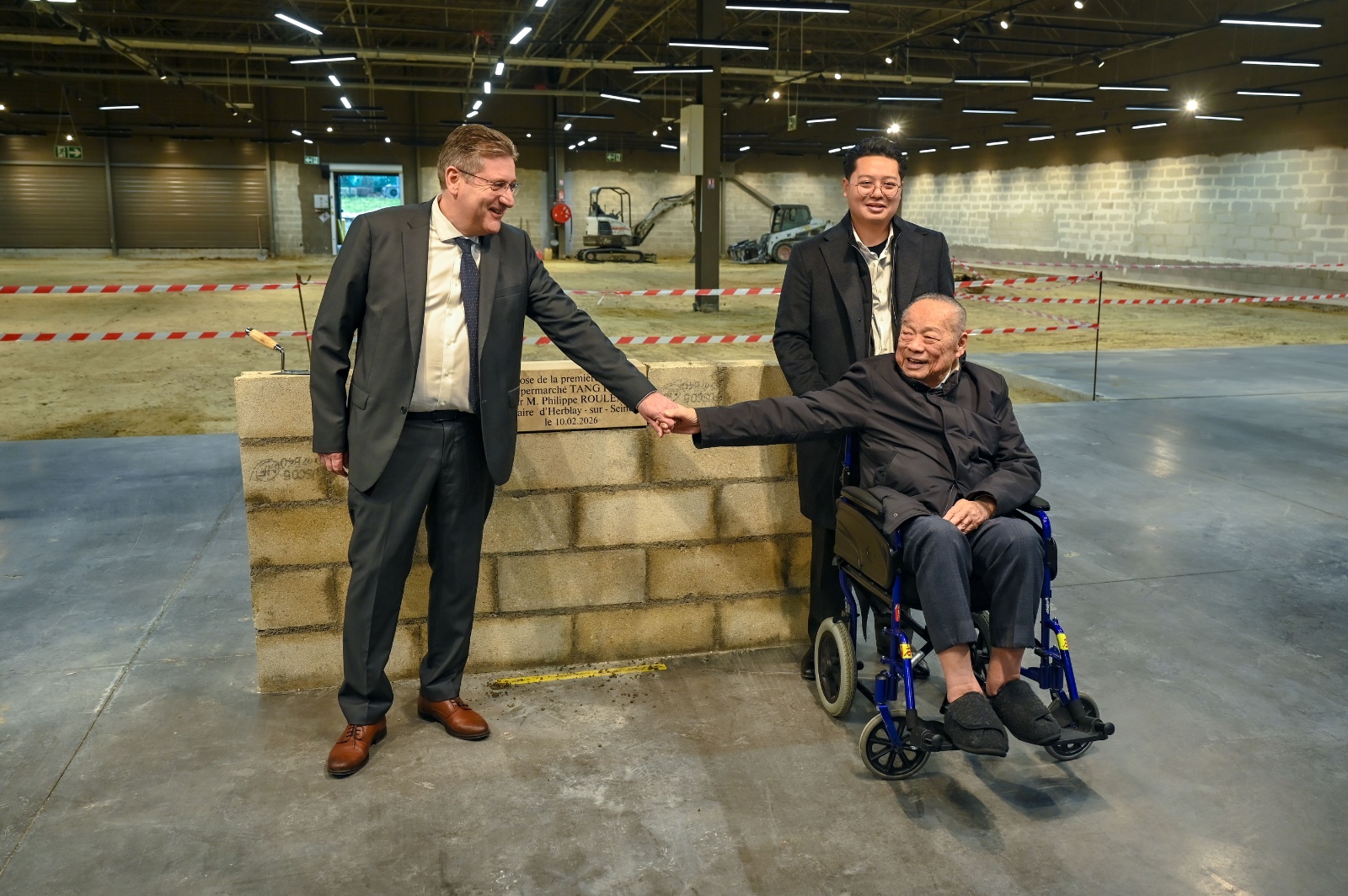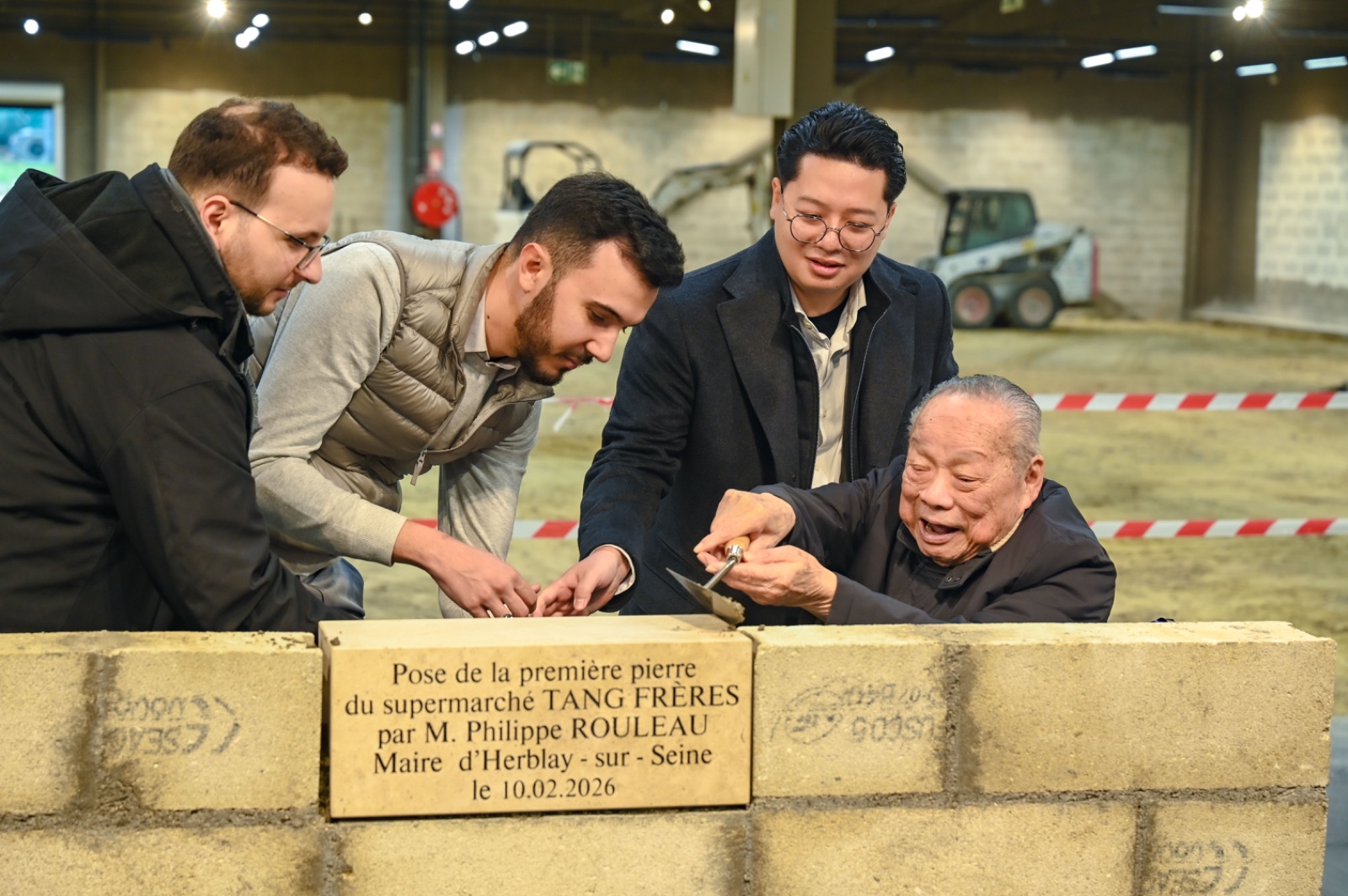 La pose symbolique de la première pierre s’est déroulée en présence du président fondateur de l’enseigne en 1975, Bou Rattanavan.
