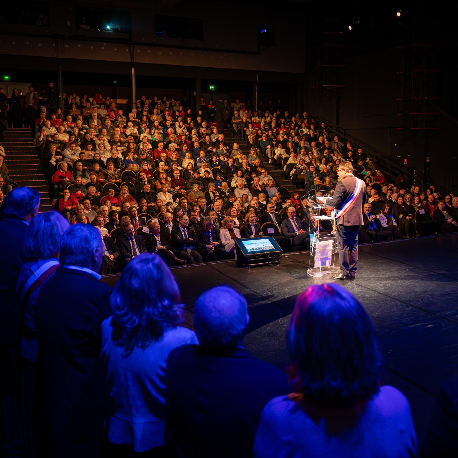 Dans son discours, Monsieur le Maire a tenu à mettre à l’honneur toutes les forces vives de la Ville : associations, commerçants, entreprises, conseils de quartier, communauté éducative, professionnels de santé, agents municipaux, forces de secours et d’intervention…