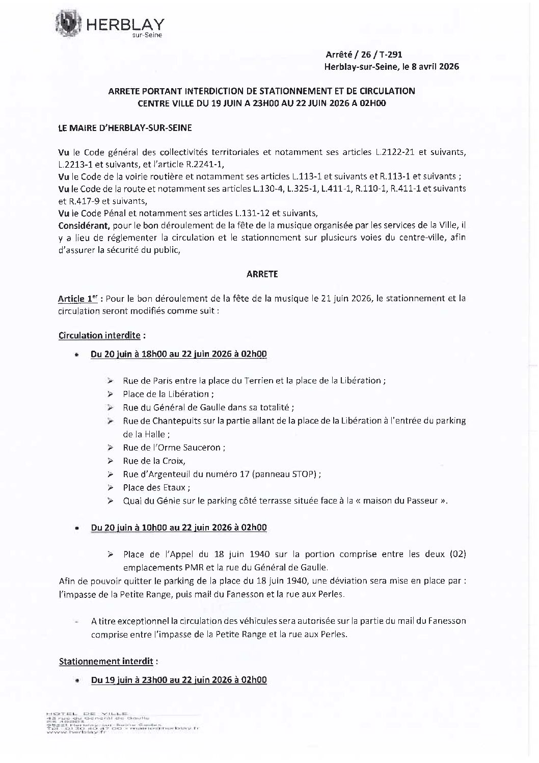 Arrêté portant interdiction de stationnement et de circulation Centre-ville