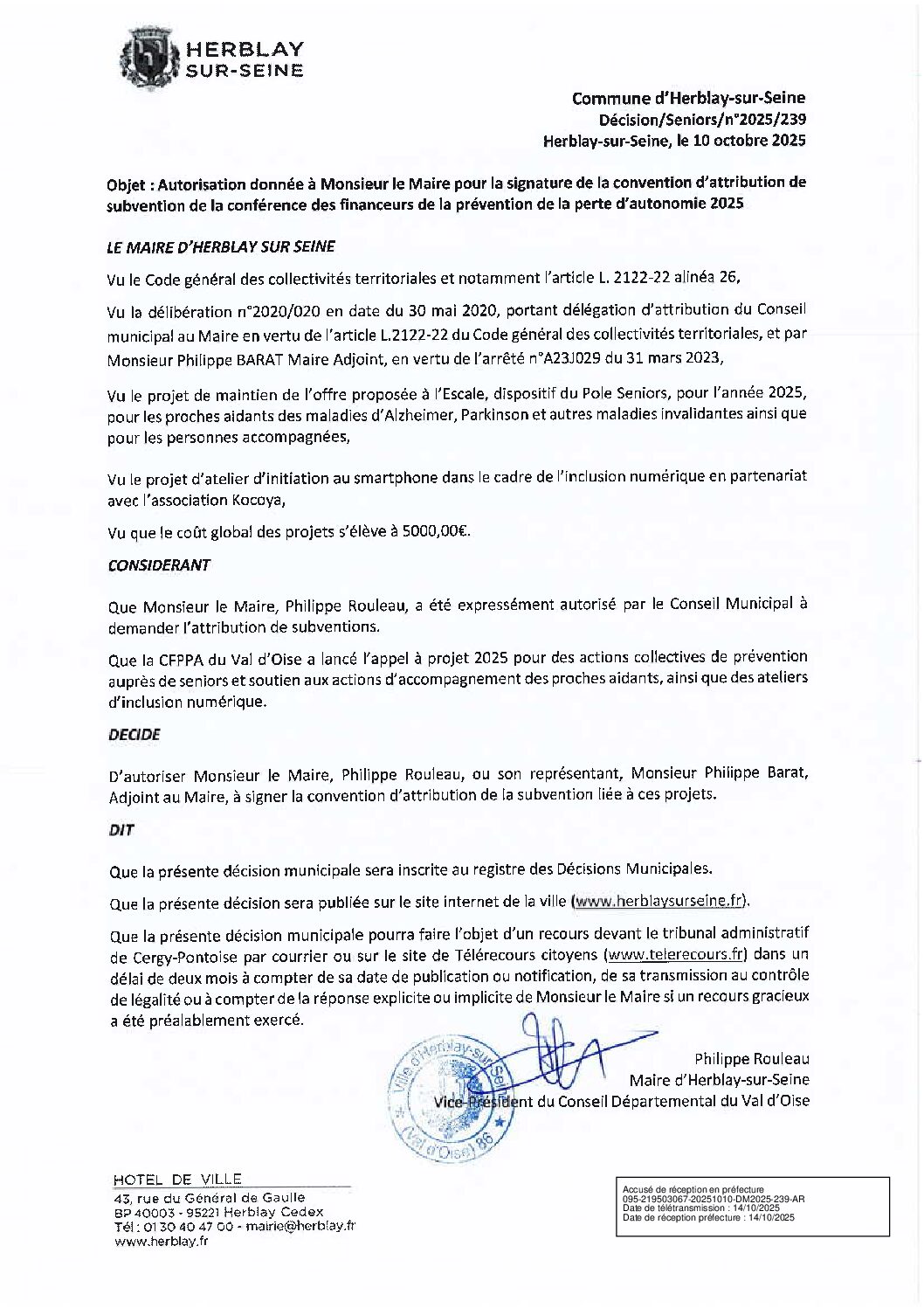 Autorisation donnée à Monsieur le Maire pour la signature de la convention d’attribution de subvention de la conférence des financeurs de la prévention de la perte d’autonomie 2025