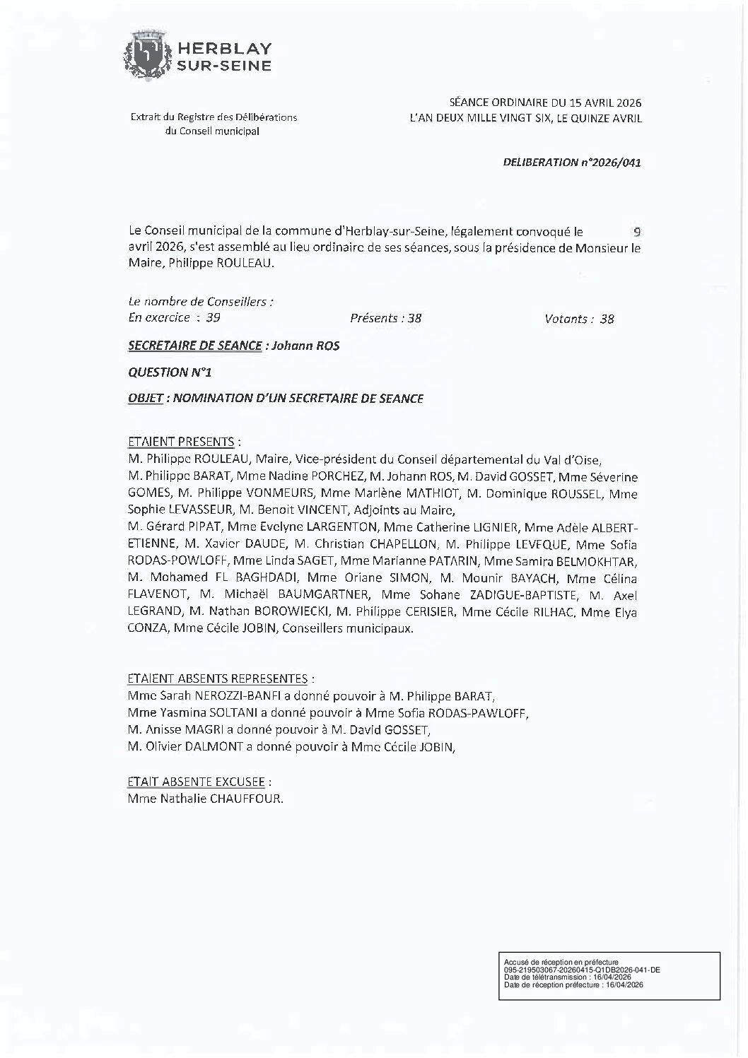 Délibérations du Conseil municipal du 15 avril 2026